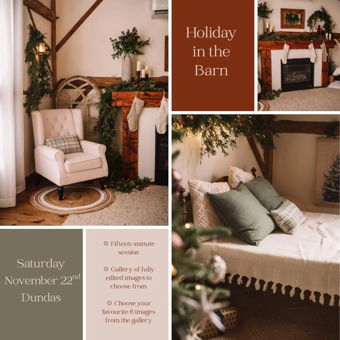 This year’s Holiday Petite Sessions are happening on select weekends this November in Burlington and Dundas. Each location is carefully chosen for its gorgeous light and festive backdrop — the kind that makes your photos look like they belong on a magazine cover (but still totally real).